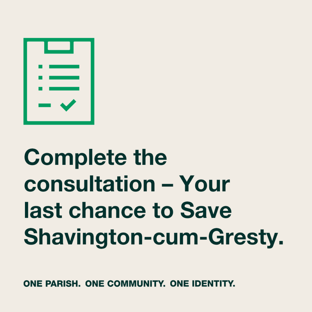 Stand up and support those most affected by telling Cheshire East Council what you think of their plan to break up our parish of Shavington-cum-Gresty: